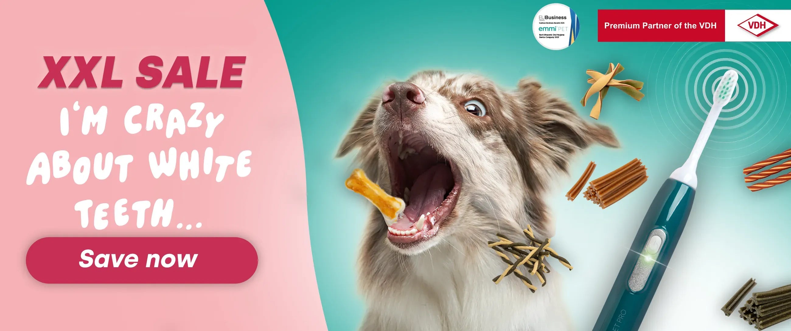 Dogs and cats cannot clean their teeth sufficiently themselves, especially with today's food intake or narrow interdental spaces, as well as misalignments that make natural self-cleaning more difficult. Ultrasound technology helps here.