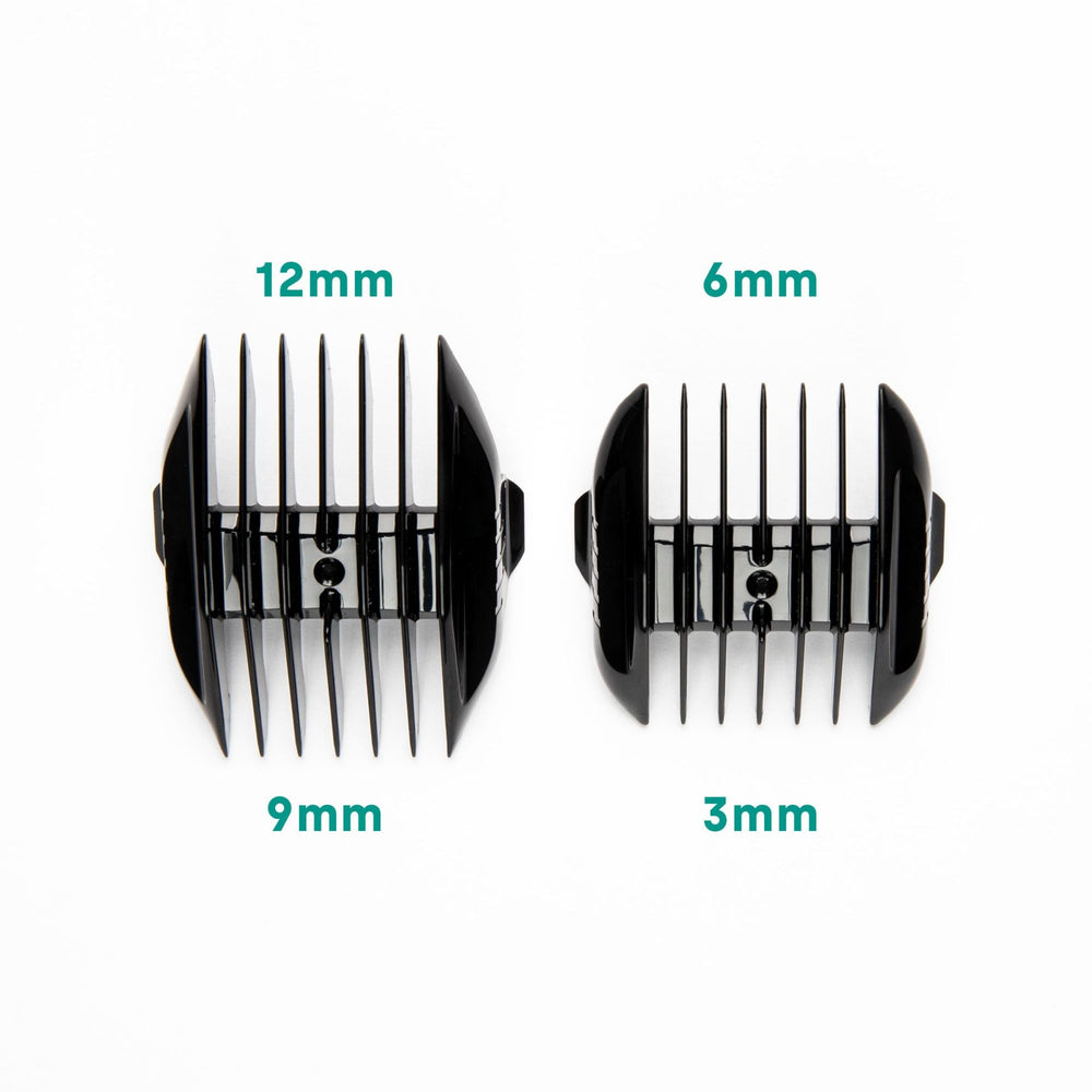 • Verstellbare Aufsteckkämme – Inklusive Kämme für 3/6 mm und 9/12 mm Schnittlängen für präzise Anpassungen