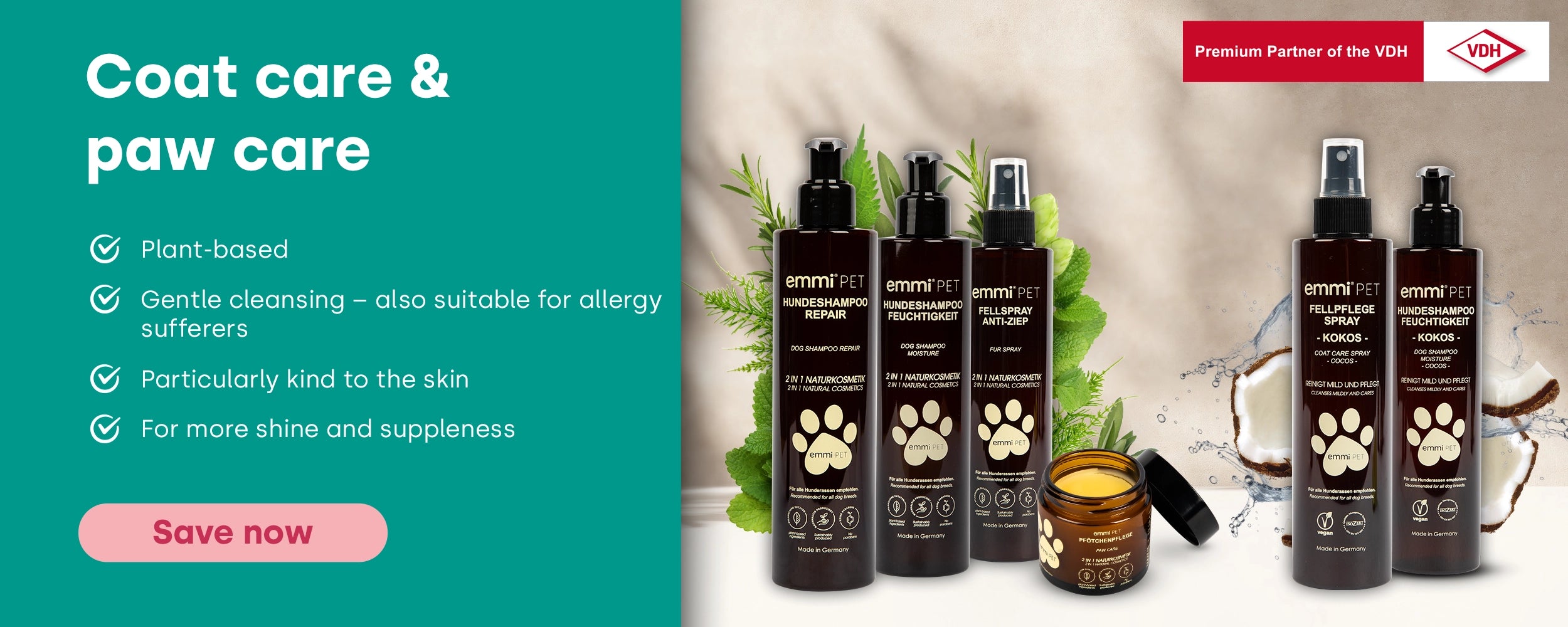 En Emmi Pet, no solo encontrará golosinas y productos de cuidado dental.También ofrecemos una amplia selección de productos para el cuidado de pieles y juguetes para perros, así como camas para perros.