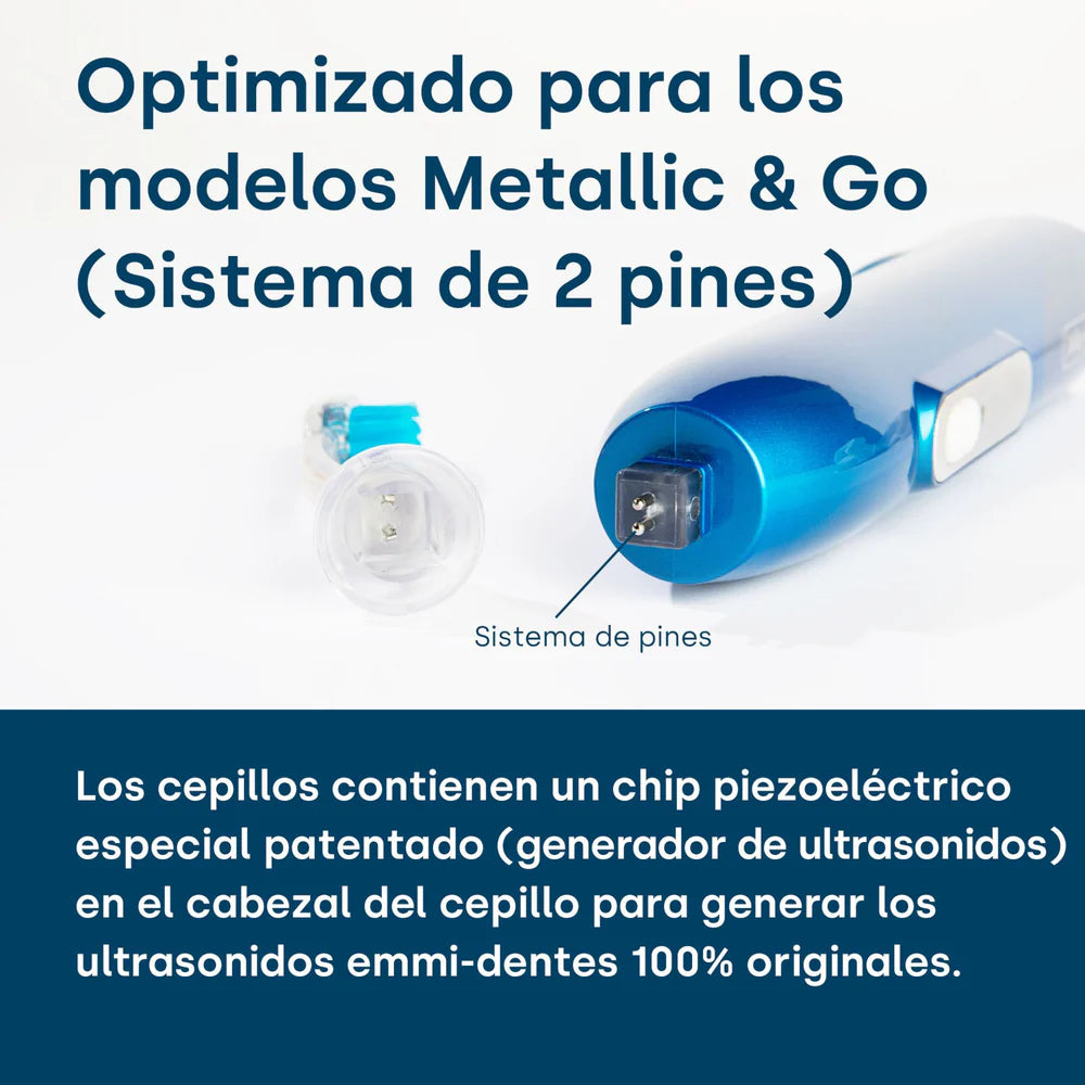 Tenga en cuenta que el cabezal del cepillo ultrasónico del emmi-dent Metálico y Go exclusivamente para la limpieza dental e higiene bucal con el modelo emmi-dent Metálico & IR se puede utilizar