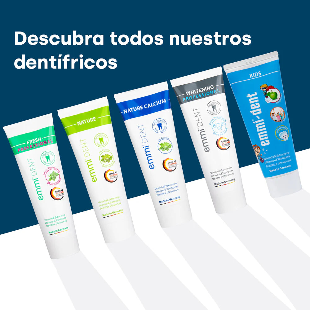 La pasta de dientes emmi-dent Fresh es ideal para dientes sensibles. Limpia suavemente, fortalece las encías y combate la placa y el sarro. Con ingredientes naturales, proporciona un aliento fresco y una sensación de limpieza a través de la revolucionaria tecnología de ultrasonido.