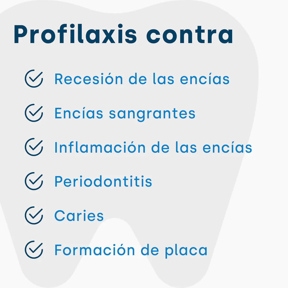 Nuestra pasta de dientes avanzada apoya el proceso de reparación natural del esmalte dental y proporciona una limpieza profunda, incluso en zonas de difícil acceso.