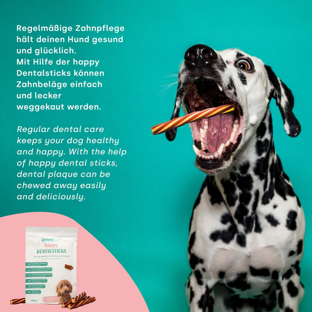 Los palitos dentales pulidores de dientes emmi-pet contribuyen a la salud bucal de su perro combatiendo eficazmente la placa y el sarro, cuidando las encías y reduciendo la formación de nuevos depósitos. Nuestros palitos dentales para perros son un complemento natural al cepillo de dientes y perfectos para el uso diario.