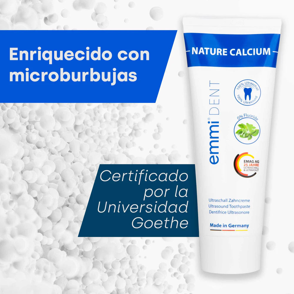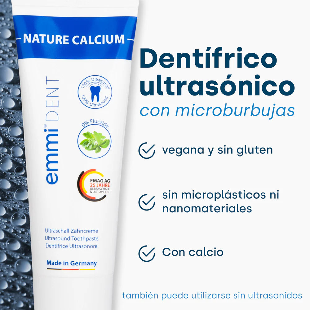 Experiencia con emmi-dent La pasta de dientes ultrasónica Nature Calcium es un producto de cuidado dental natural y sin flúor que no solo limpia suavemente los dientes sino que también los fortalece con valioso calcio. Esta descripción del producto le presenta las características y beneficios excepcionales de esta pasta de dientes única: