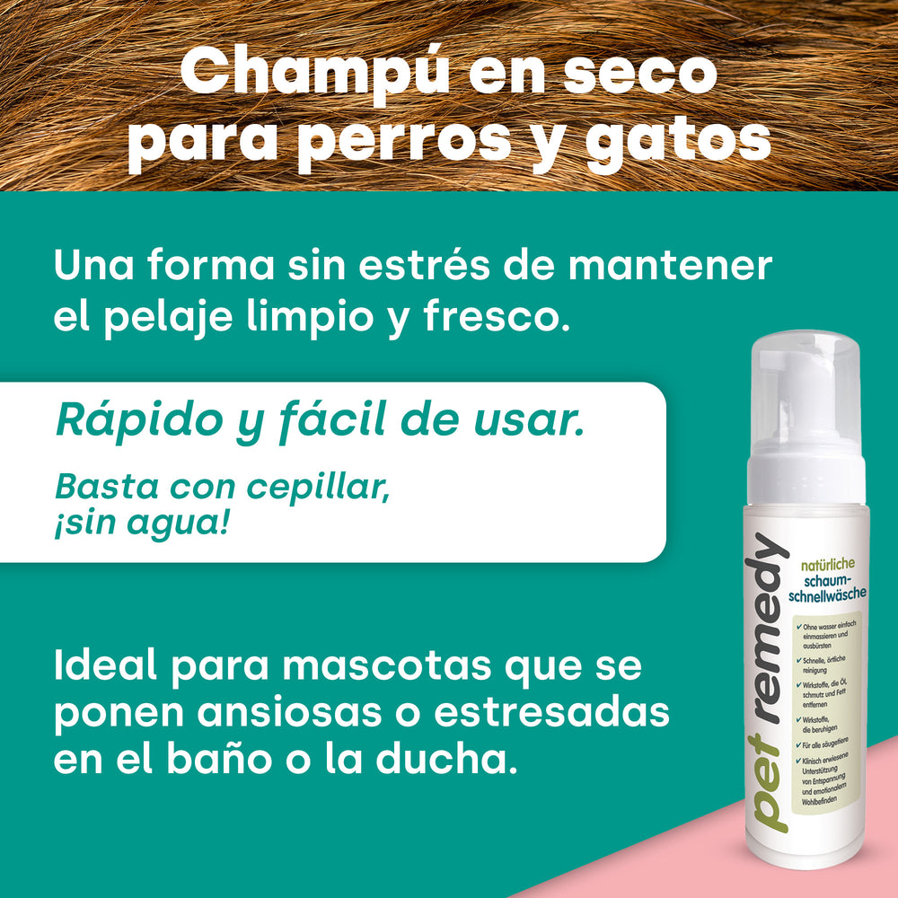 - Sin agua & sin estrés – no necesita enjuague, ideal para animales que temen al agua