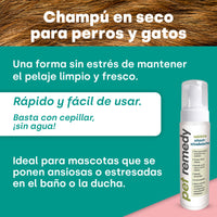 La espuma limpiadora Pet Remedy es la alternativa sin estrés al baño – ideal para mascotas que evitan el agua o se ponen nerviosas durante el aseo. Este champú seco espumoso limpia y refresca el pelaje suavemente, sin necesidad de enjuagar. Solo hay que aplicar, masajear y cepillar – ¡listo!