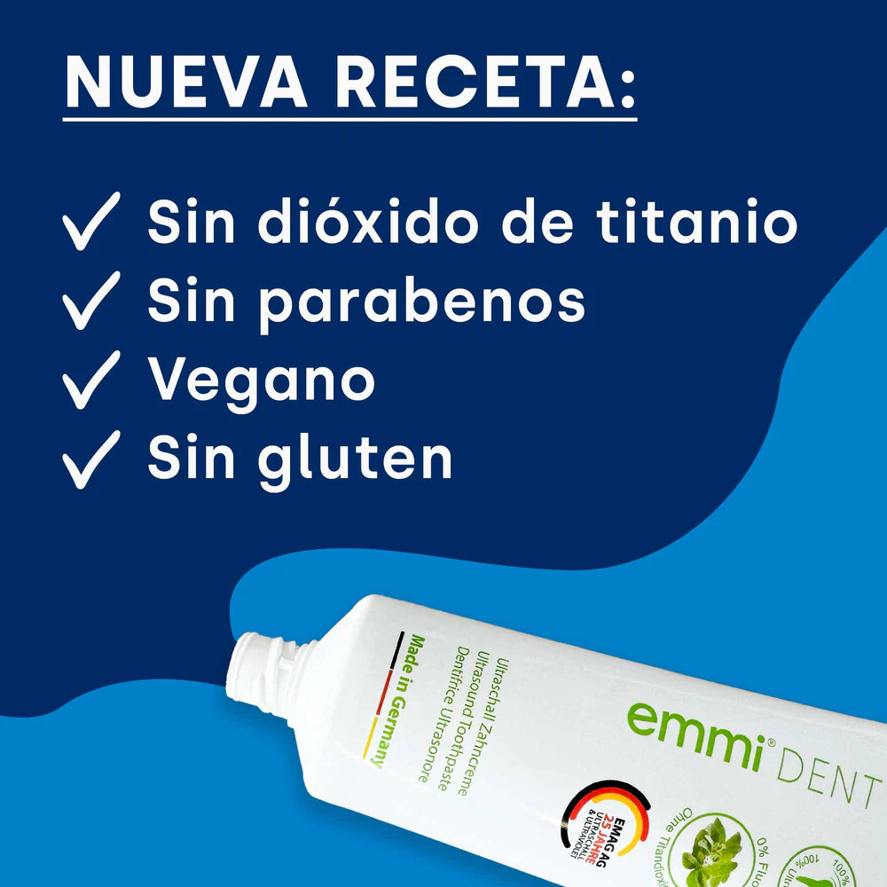 En emmi-dent Damos gran importancia a la calidad y la naturalidad. Nuestra pasta de dientes ultrasónica Nature contiene ingredientes naturales cuidadosamente seleccionados que cuidan y protegen eficazmente sus dientes. Confianza en emmi-dent y disfrute de los beneficios de un cuidado dental de alta calidad sin flúor ni dióxido de titanio.