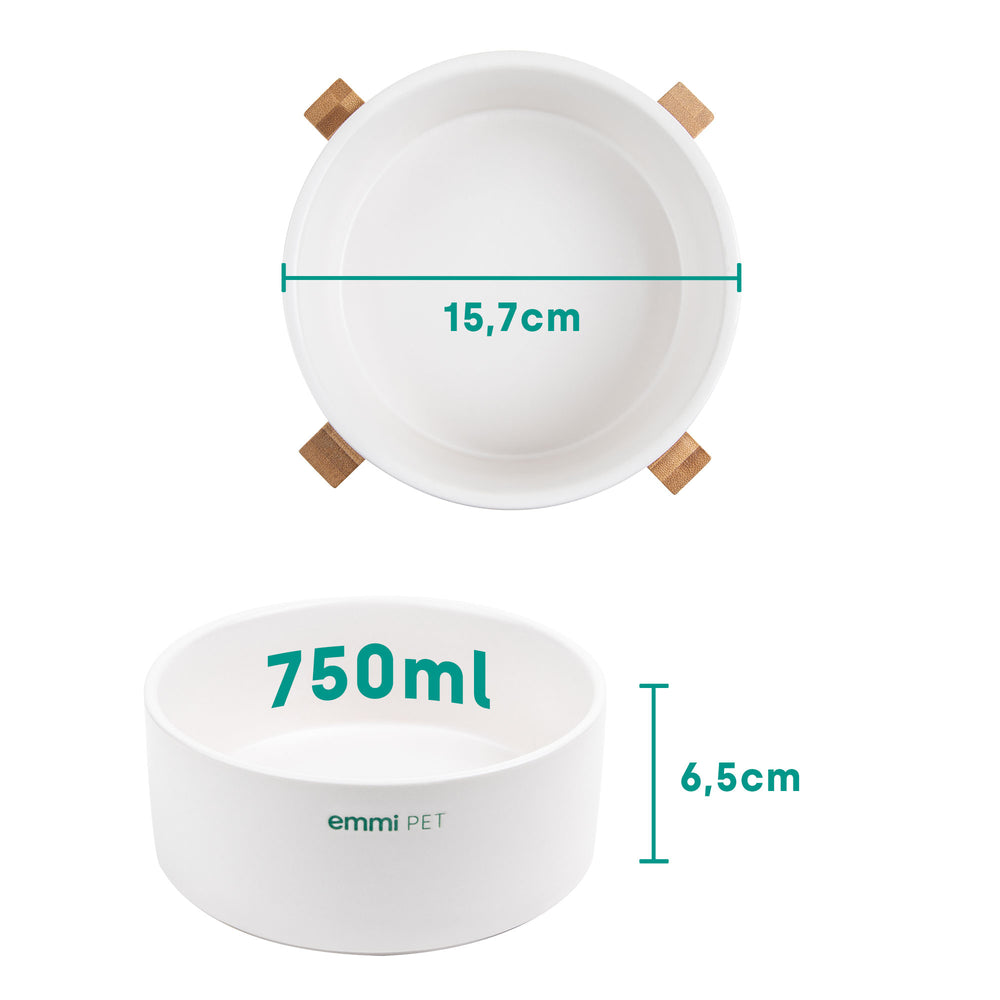 Con el diseño minimalista del cuenco de cerámica de emmi-mascota Ofrecemos no sólo una alimentación elegante sino también cómoda para mascotas y dueños. El agradable peso del cuenco y el marco de madera a juego proporcionan estabilidad y garantizan el disfrute de la ración diaria de comida. El suave La superficie del cuenco para perros facilita el cuidado y la higiene diarios. Se puede lavar a mano o limpiar en el lavavajillas. Gracias a la base antideslizante, el cuenco de cerámica con marco de madera se mantiene estable en el suelo y evita que se vuelque. Esto minimiza los derrames y garantiza un ambiente limpio. El marco de madera está recubierto con barniz para protegerlo del agua. El comedero para perros pequeños y grandes atrae todas las miradas para cualquier dueño de mascota gracias a su aspecto moderno.
