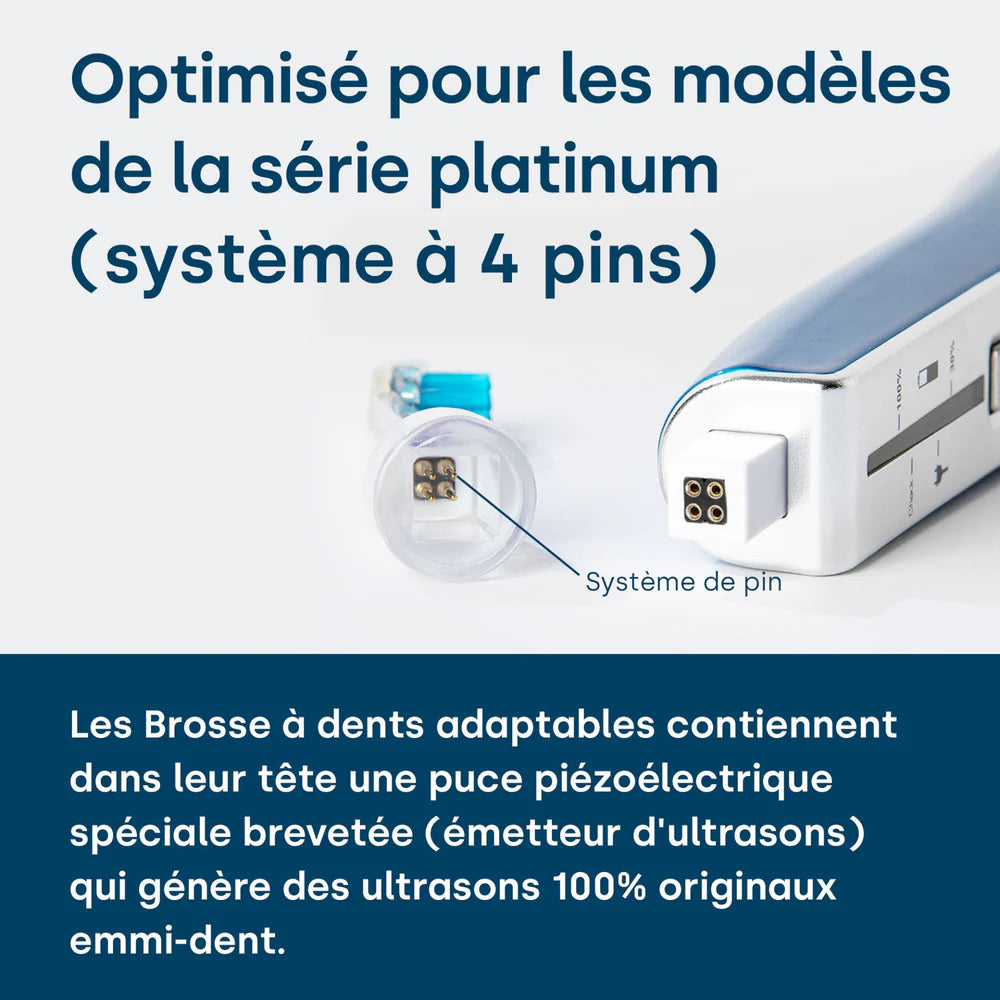 Veuillez noter que les têtes de brosse à ultrasons de la emmi-dent Platinum exclusivement pour le nettoyage des dents et l'hygiène bucco-dentaire avec le modèle Premium Emmi-dent Platine peut être utilisé.