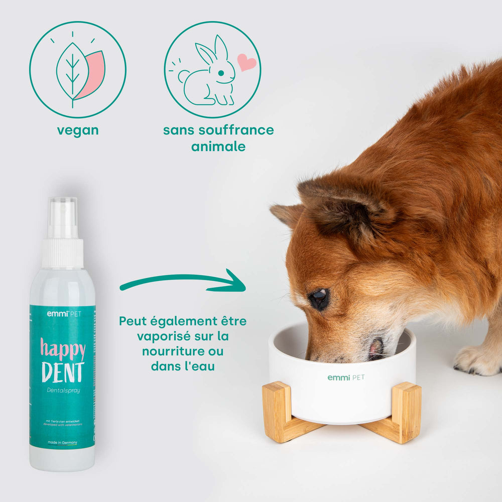 Grâce à l'animal de compagnie Emmi, Tartar reste minime, les gencives sont saines et la respiration fraîche.Votre chien reste exempt de douleur et des avantages d'un puits augmenté et de santé à long terme.