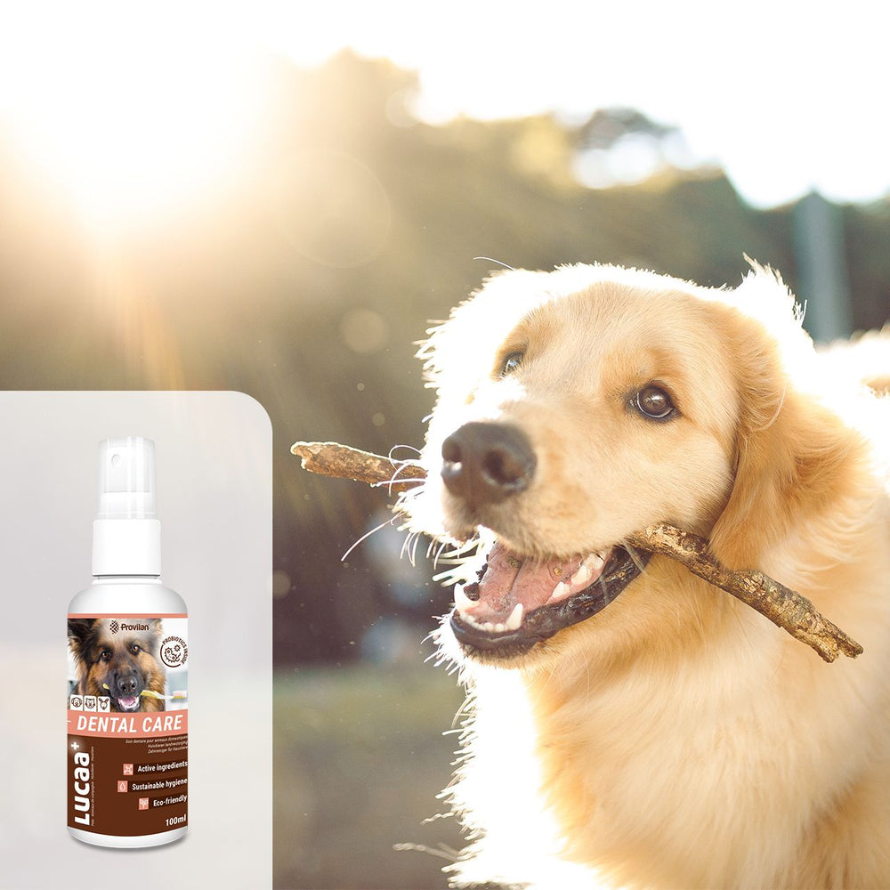 Le nettoyant dentaire biologique LUCAA+ est une solution écologique pour un soin dentaire rapide et facile des animaux de compagnie. LUCAA+ nettoyant dentaire bio crée une microflore équilibrée des dents et des gencives. Les micro-organismes utiles assurent un nettoyage microscopique en profondeur. Avec le goût délicat du poulet et sous forme de spray pratique, développé même pour les animaux les plus difficiles.