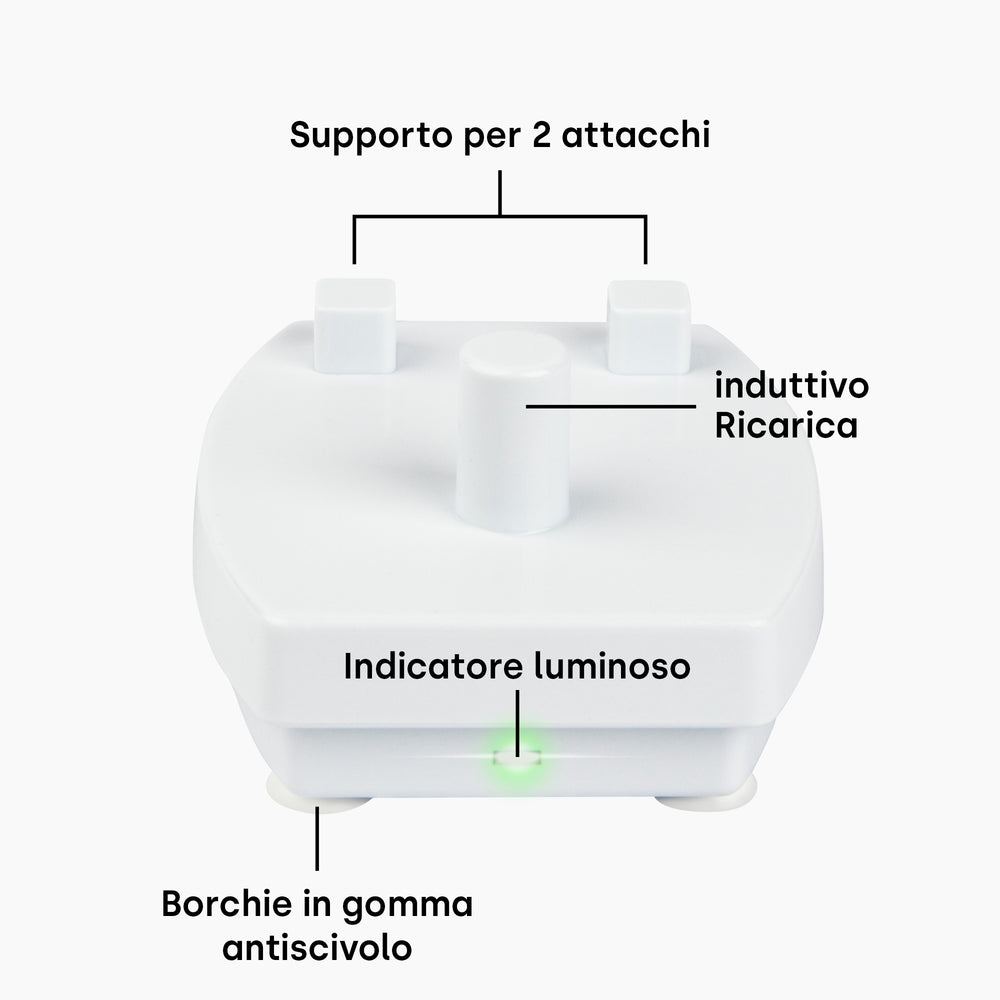 Con il emi 100-240 Stazione di ricarica Ultra puoi creare un secondo "pilastro" per ricaricare i tuoi dispositivi, soprattutto se più persone utilizzano la emmi-dent Apparecchi ad ultrasuoni per la pulizia dei denti e l'igiene orale con ecografia originale al 100%.