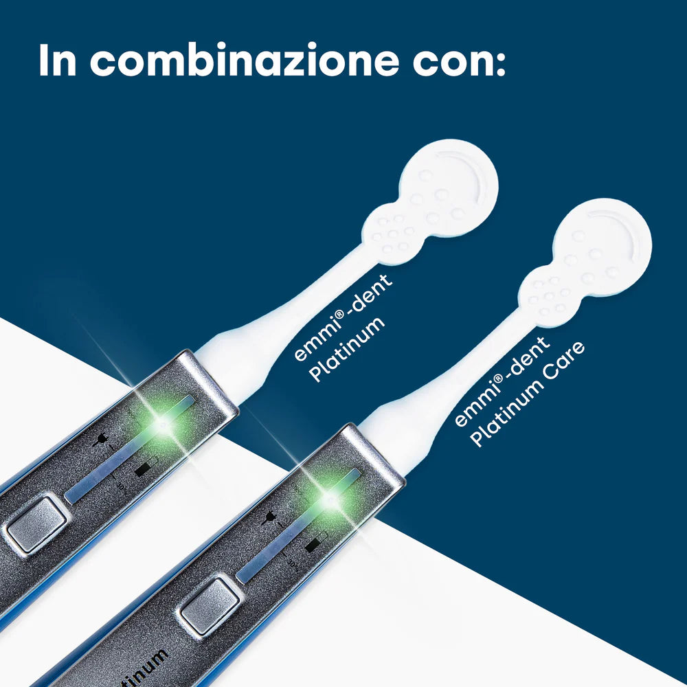Si prega di notare che la testina della spazzola ad ultrasuoni del emmi-dent Platinum esclusivamente per la pulizia dei denti e l'igiene orale con il modello Premium emmi-dent Platino può essere utilizzato.