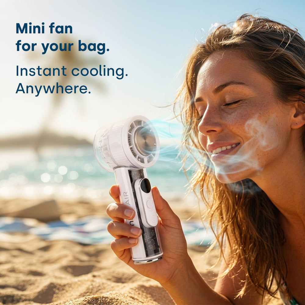 • Pratico mini ventilatore per viaggi, ufficio e tempo libero